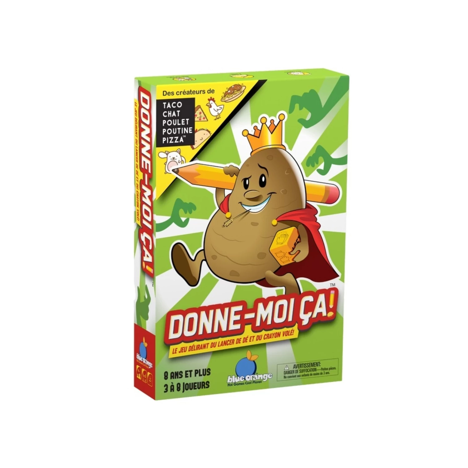 Donne-moi ça! C’est un jeu d’action et de comptage rapide complètement fou! En tant que nouvelle recrue du bureau de gestion des patates, ta mission consiste à compter les pommes de terre. Mais – attention ! Tout le monde a le même travail et il n’y a qu’un seul crayon que les joueurs se volent sans arrêt ! Alors, ne te noie pas dans la purée et sort du jeu roi de la patate !