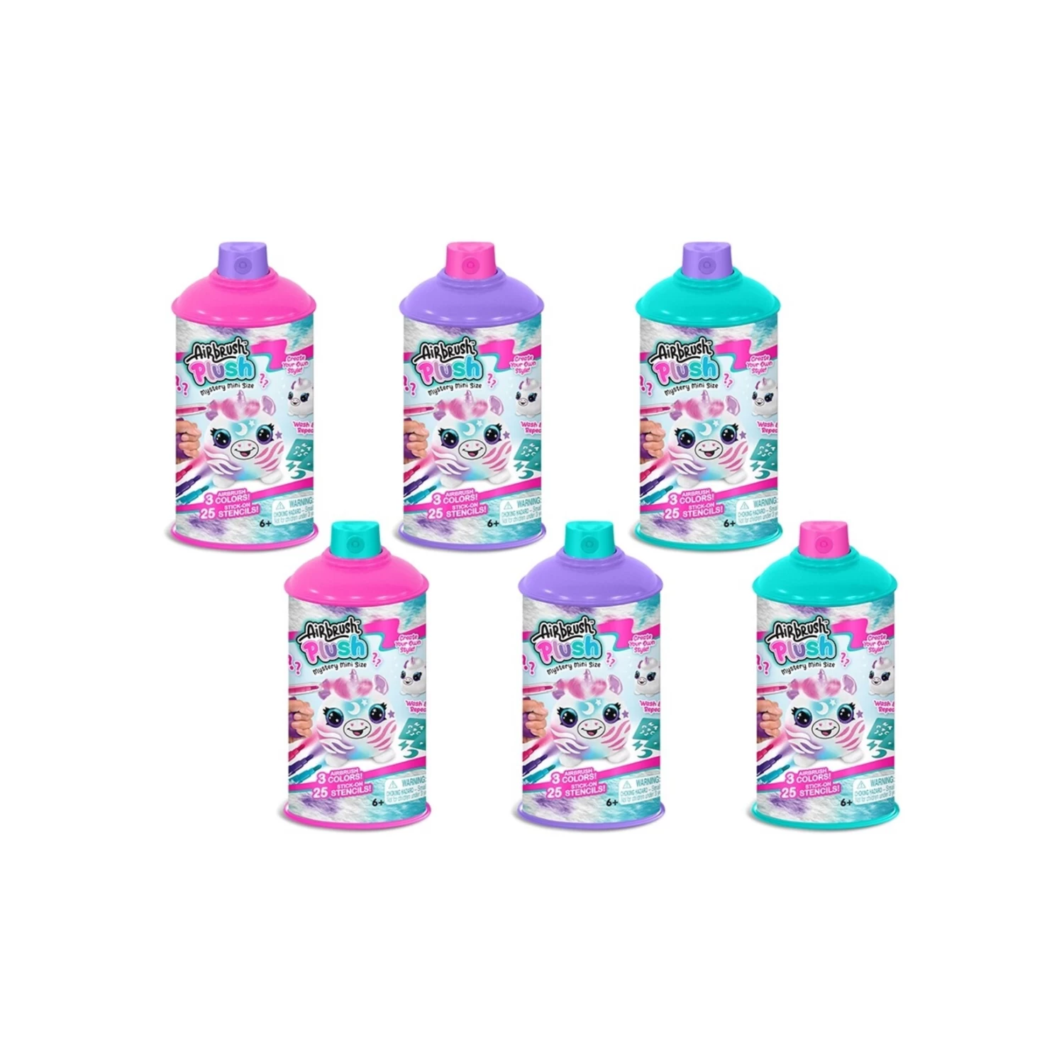 Bombe aérosol avec un personnage en peluche surprise de 8,9 cm à l’intérieur. L’animal en peluche est doux, avec des oreilles et des accents de couleur argentés. Utilise les pochoirs et les couleurs pulvérisées pour personnaliser ton design. Lave et répète encore et encore. Collectionne-les tous, 6 personnages au total.