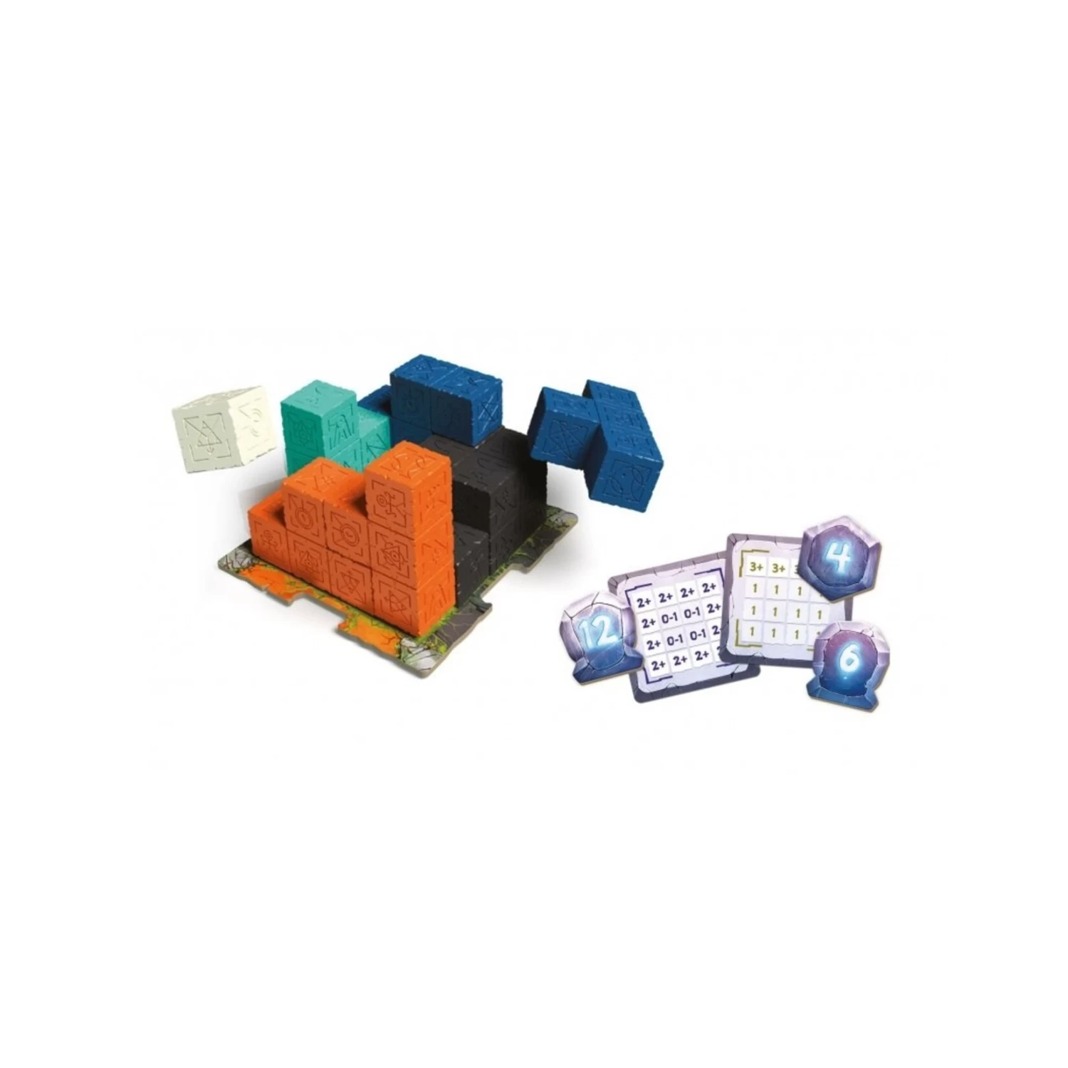Pour la mise en place, choisissez une carte structure au hasard, puis placez-la sur le plateau principal, avec les jetons structure, les jetons niveau et les jetons prophétie appropriés en fonction du nombre de joueurs. Placez le marqueur cristal à côté du plateau principal, puis tirez douze polyominos aléatoires dans la boîte et placez-les en cercle autour du plateau principal. Les polyominos sont disponibles en cinq couleurs et tous les blocs 1×1 de ces couleurs sont placés sur le côté.