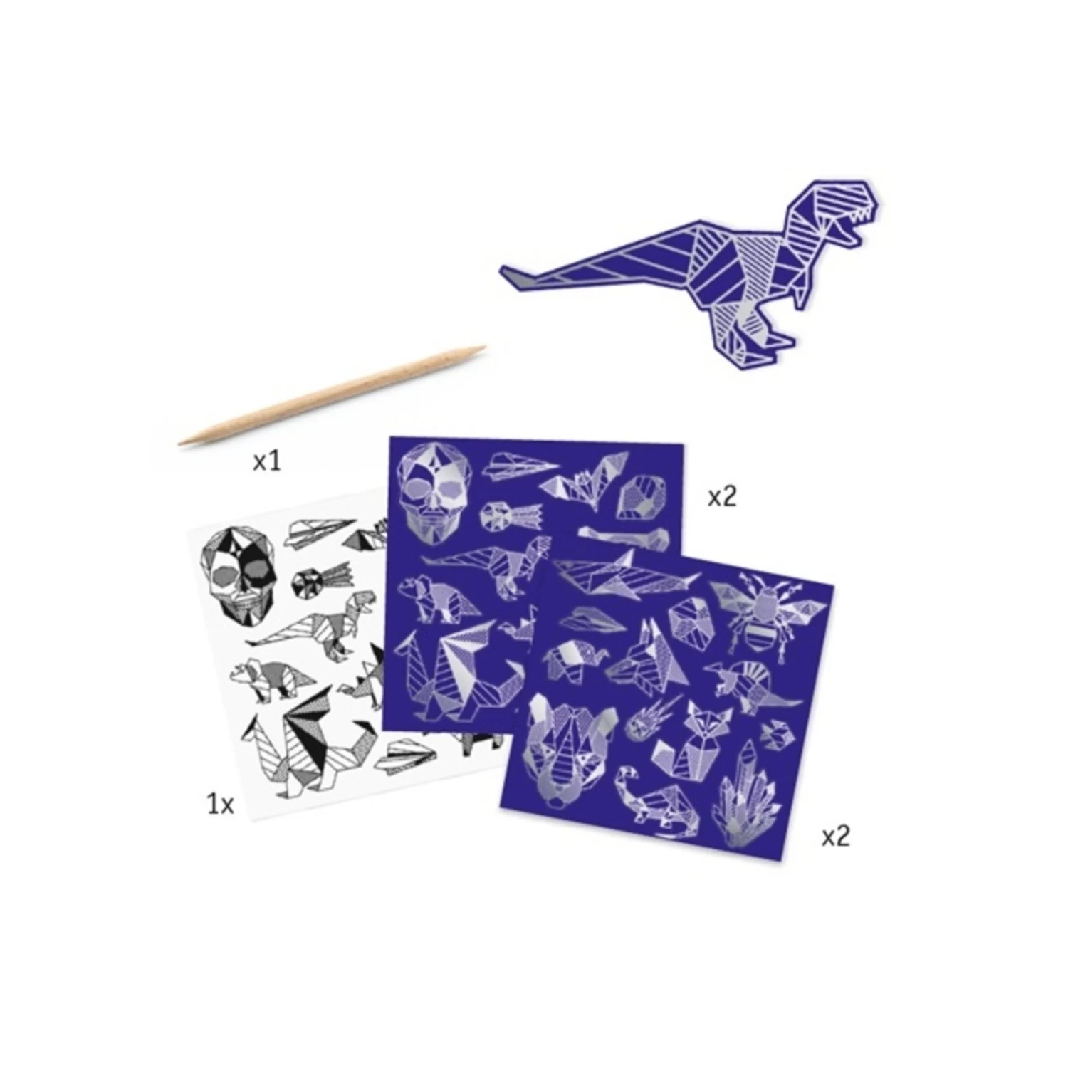 Pour faire apparaître les illustrations, on gratte la surface de la cartes.