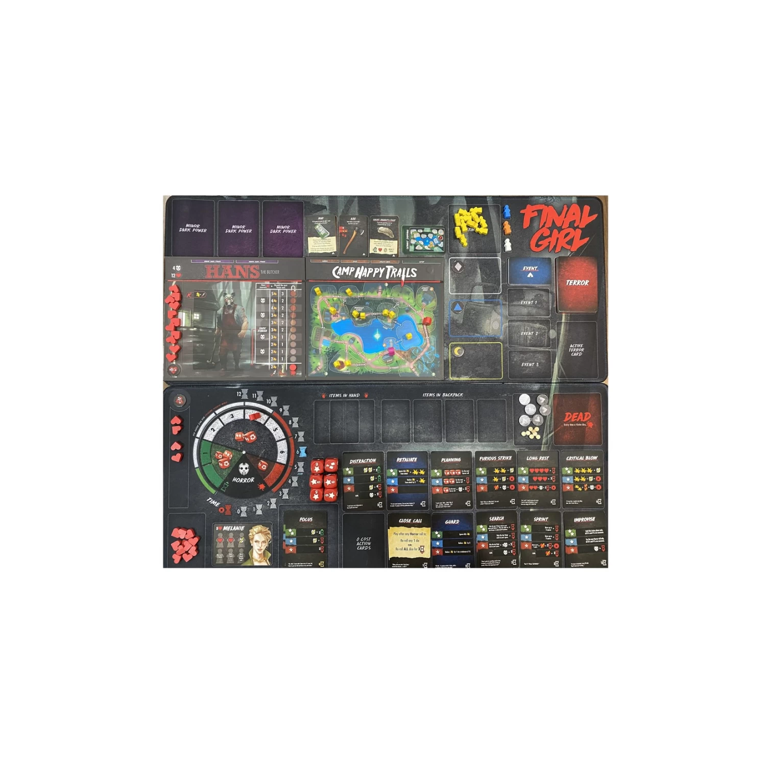 Le camp d’été devient mortel dans: The Happy Trails Horror. Cette boîte de longs métrages met en vedette Hans – The Butcher, qui assassine et régale des campeurs sans méfiance. Quand une héroïne improbable émerge, cela suffira-t-il à arrêter la tuerie ?