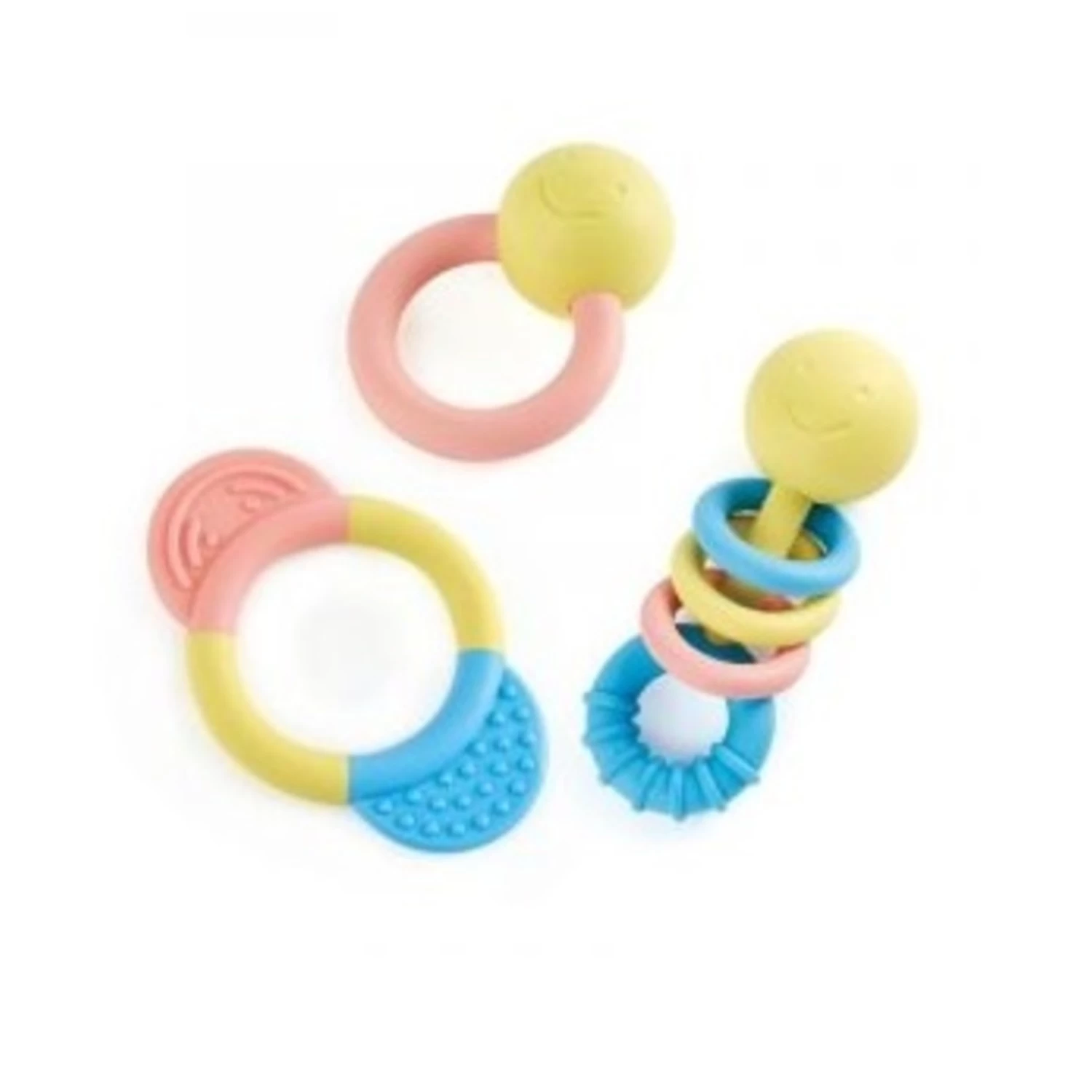 Fabriqué à partir d’un matériau sûr à base de riz japonais, le hochet au visage joyeux est livré avec trois anneaux à cliquetis mobiles pour stimuler la conscience sensorielle, et un anneau à mâcher pour les dents.