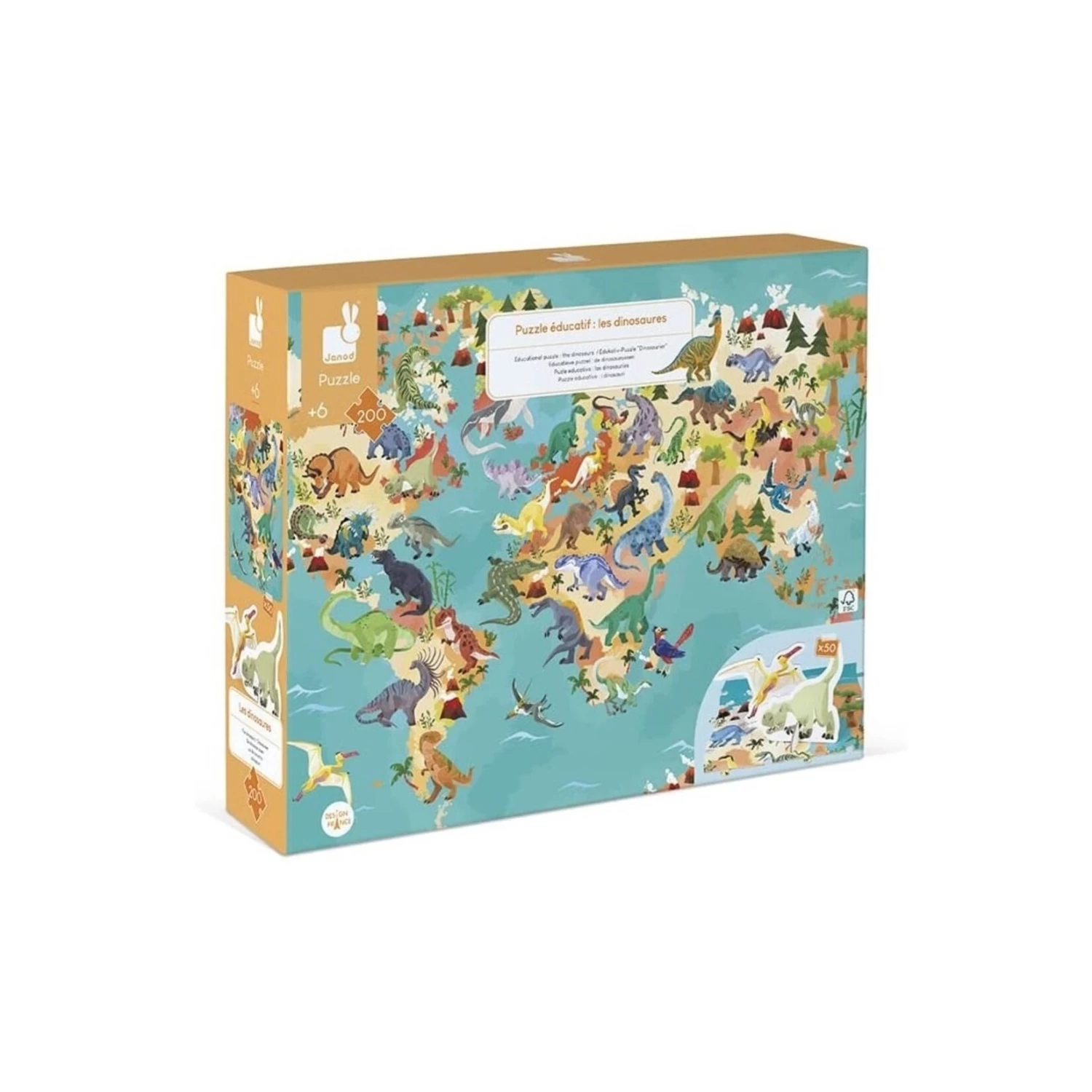 Ce magnifique casse-tête éducatif géant en carton de Janod permettra à votre enfant de découvrir les dinosaures qui ont foulés le sol de notre planète. c’est aussi une belle façon d’apprendre la géographie à votre passionné-e des dinosaures.