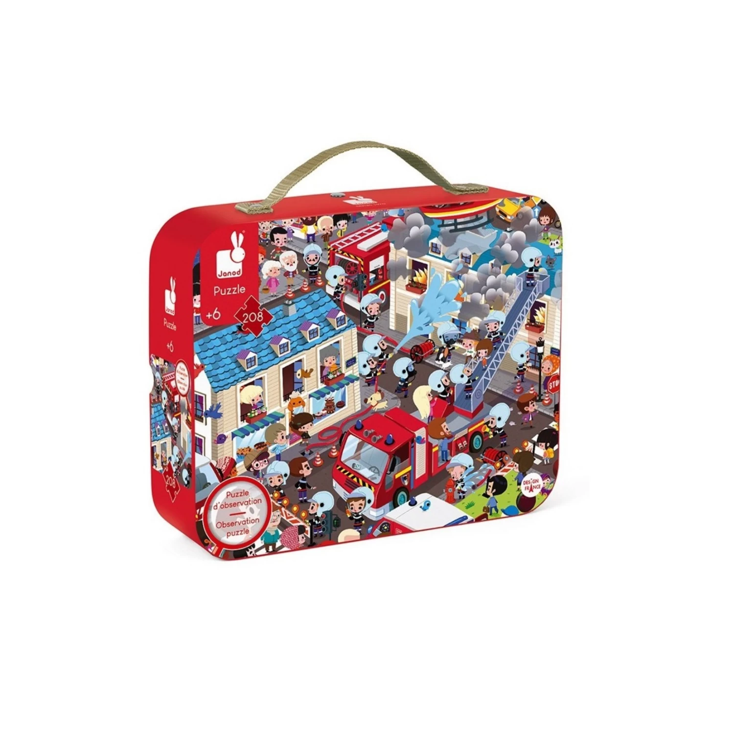 Une fois le puzzle terminé, l’enfant doit retrouver 51 objets ou illustrations indiqués autour du puzzle. Puzzle rond d’un diamère de 50 cm.