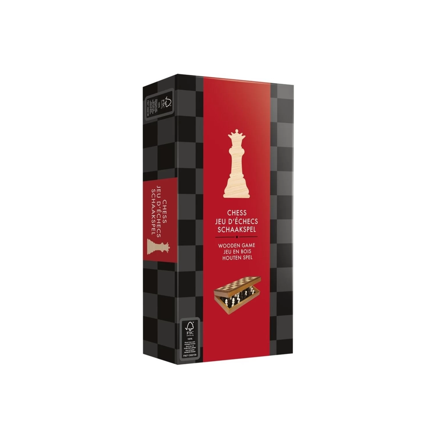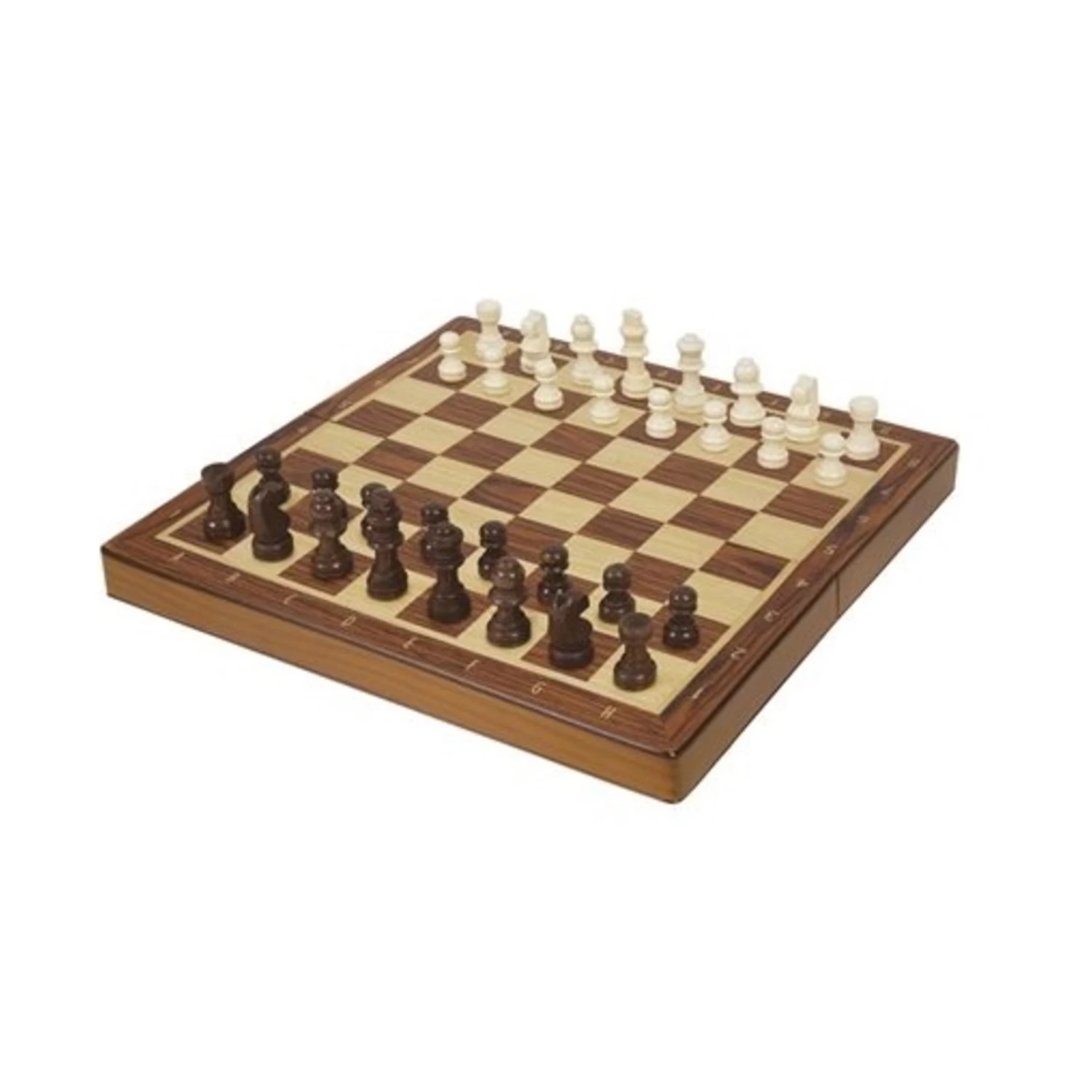 Un magnifique jeu d’échecs avec un plateau et de pièces en bois. Le dessous des pièces est recouvert de velours, offrant une sensation de jeu sans failles. Les pièces peuvent être rangées dans le plateau pliable pour un transport facile et sécuritaire.