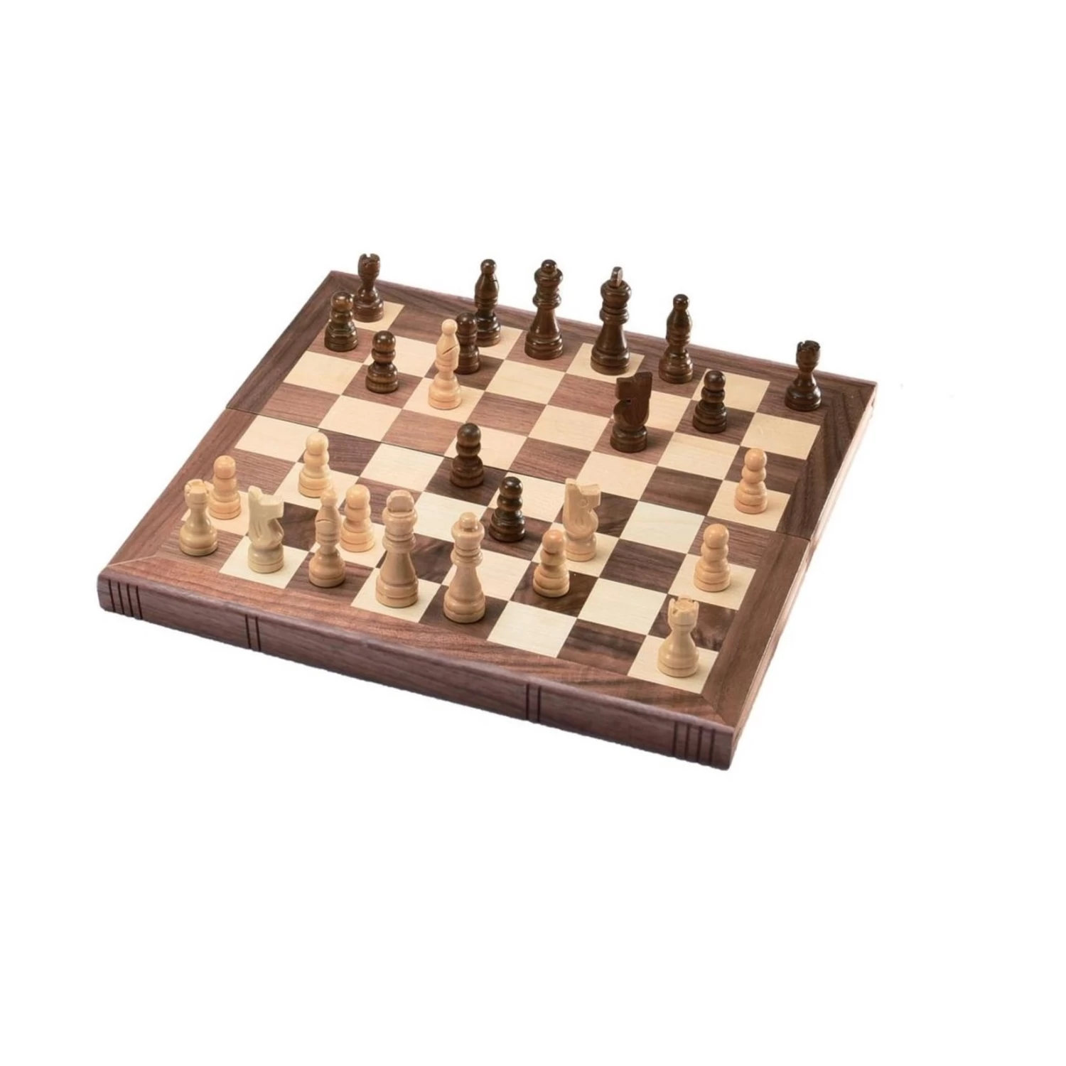 Jouez au dames ou aux échecs où vous le désirez avec cet ensemble pliable et portatif.