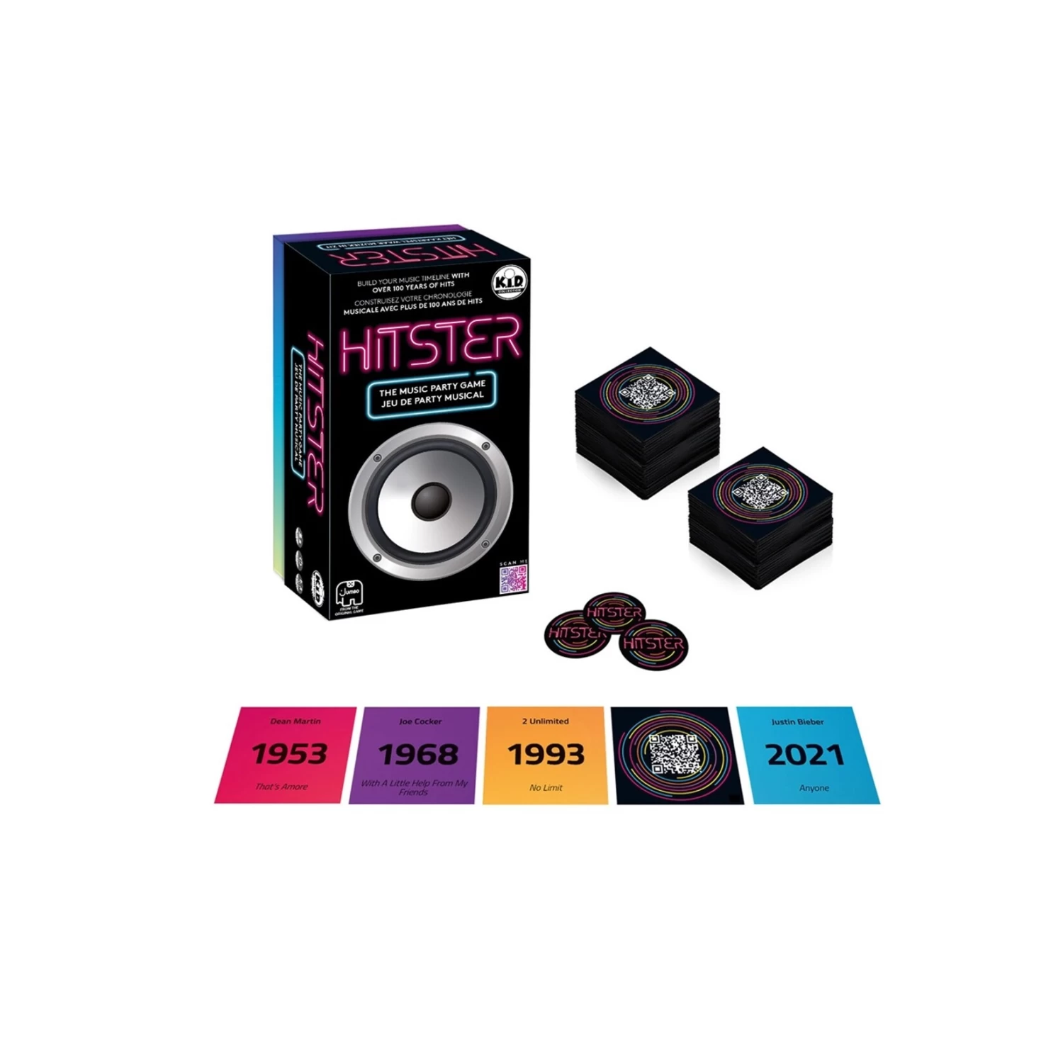 Avec HITSTER, découvrez plus de 300 hits qui vont vous faire vivre une véritable fête entre amis! Placez-les tour à tour par ordre chronologique sur votre ligne du temps musicale et créez votre propre voyage dans le passé. Le premier joueur qui réussit à placer correctement 10 hits est couronné HITSTER.