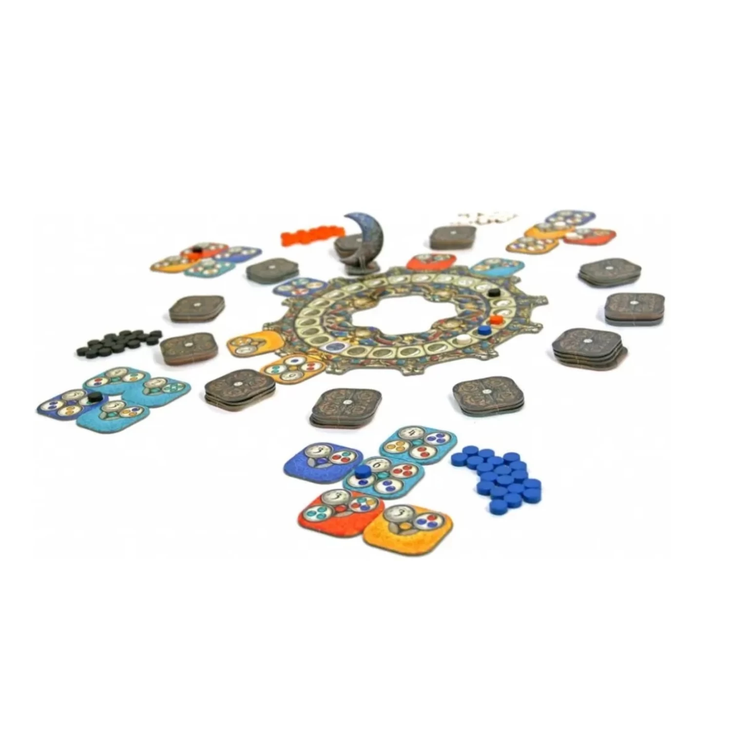 À chaque tour, vous devez décider quelle nouvelle tuile de la roue lunaire placer devant vous. Chaque nouvelle tuile apporte une nouvelle tâche que vous devez accomplir. Pour ce faire, vous devez placer des tuiles de la bonne couleur à côté de la tâche que vous souhaitez accomplir, mais celles-ci vous apportent bien sûr de nouvelles tâches. Chaque fois qu’une tâche est résolue, vous pouvez placer un de vos marqueurs dessus. Alors décidez judicieusement et soyez le premier à placer tous vos marqueurs.