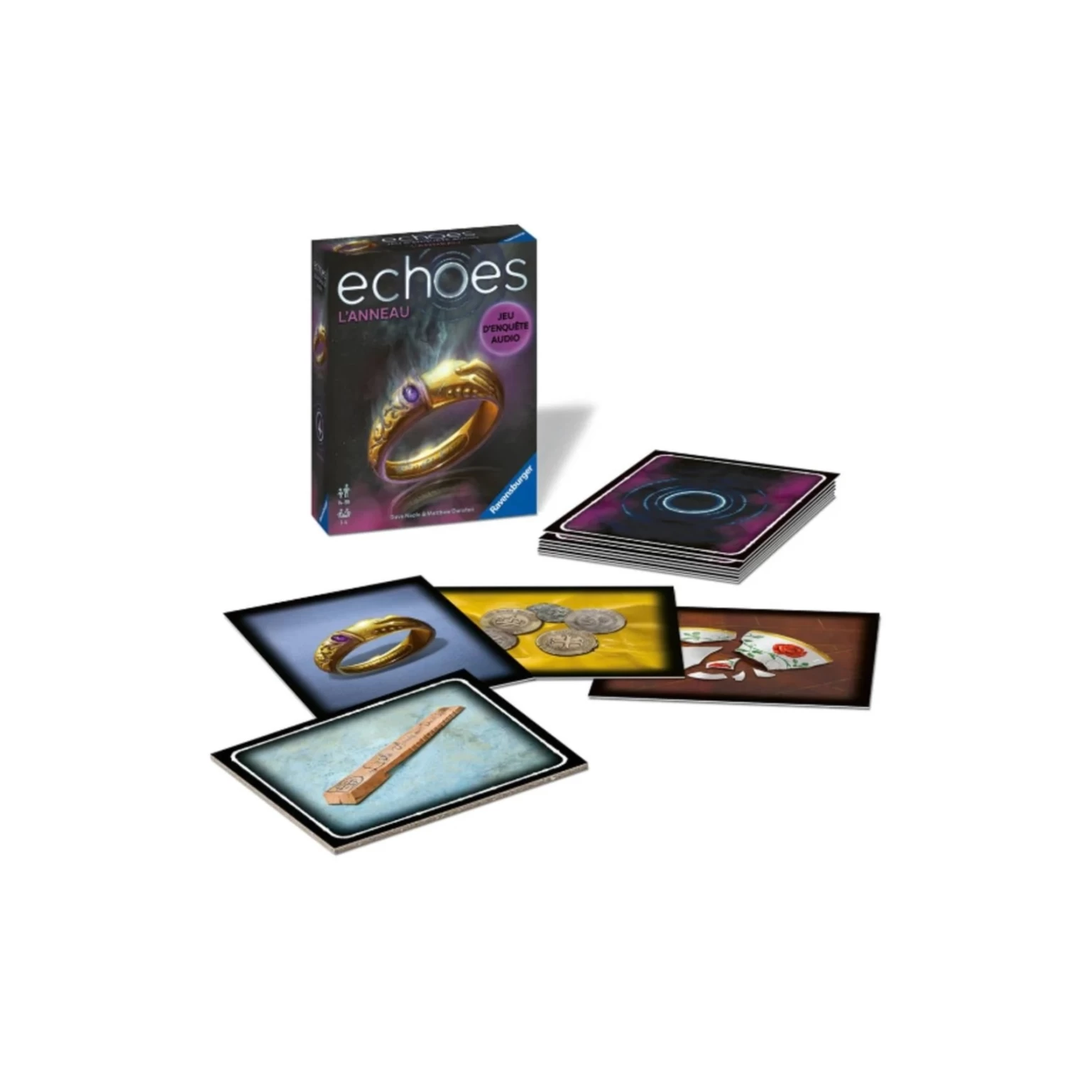 Un jour comme les autres, un vieil anneau familial retombe dans les mains de ses légitimes héritiers. Ce dernier renferme un lourd secret de plus d’une centaine d’années sous son aspect ancien. Des echoes disent que des choses terribles se produisent aux personnes se trouvant en sa possession. Croyez-vous aux malédictions ? Sauriez-vous résoudre le mystère autour de cet héritage ancestral ? Chaque carte représente un objet que vous avez trouvé sur votre lieu d’enquête.
