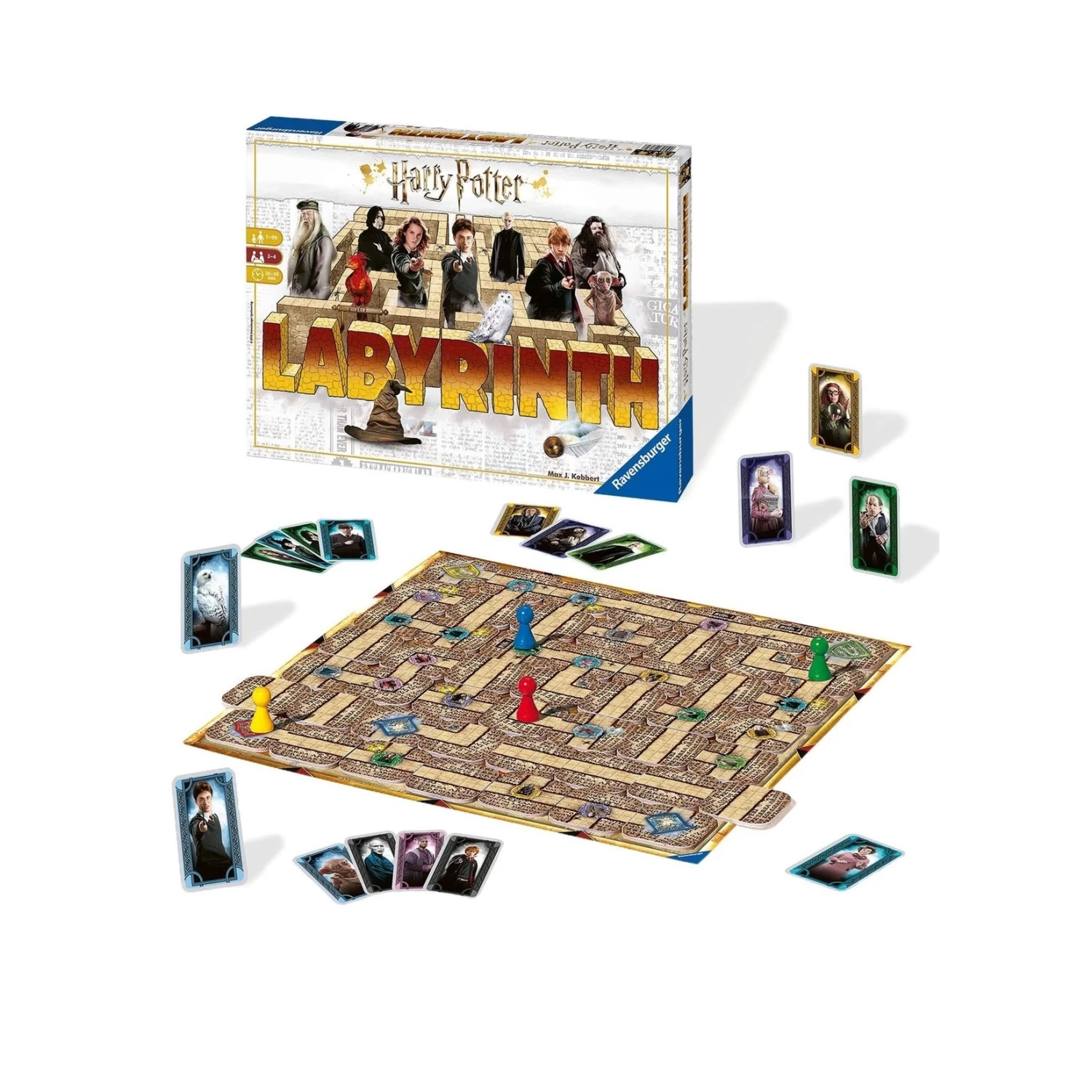 Qui réussira le mieux à s’orienter à travers ce labyrinthe Harry Potter et trouvera les chemins menant aux célèbres pensionnaires de Poudlard? Harry, Ron, Hermione, mais également le professeur Dumbledore, Hagrid ou encore Edwige, la chouette de Harry attendent que vous les retrouviez. À vous de faire coulisser habilement les plaques du labyrinthe pour transformer les impasses en passages. Vous pourrez ainsi créer de nouveaux chemins et atteindre les personnages recherchés. Le célèbre labyrinthe en mouvement. Des règles simples et des parties toujours palpitantes !