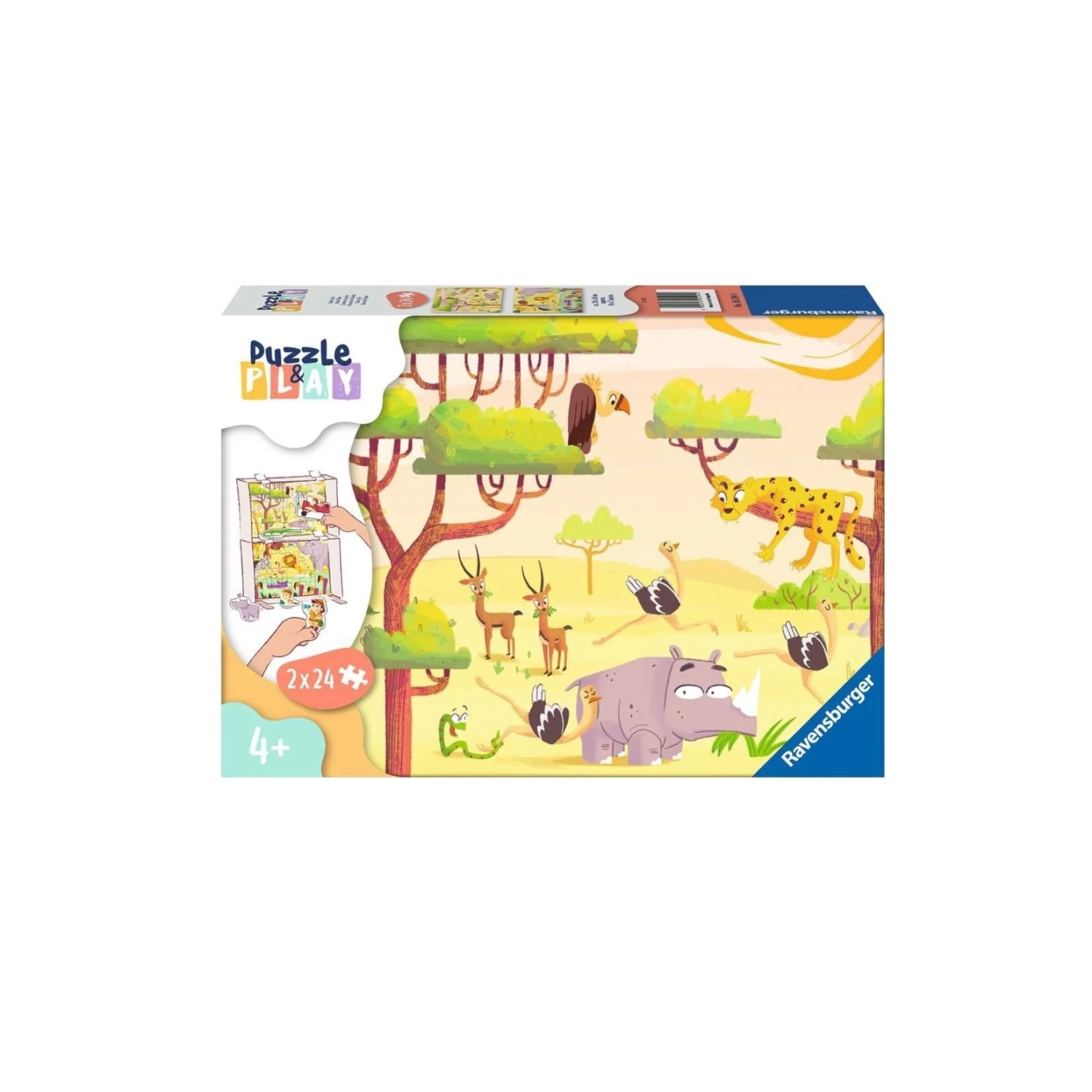 Puzzle&Play est un concept innovant qui combine le plaisir du puzzle et celui du jeu. La boîte contient 2 puzzles de 24 pièces ainsi que du matériel pour que les puzzles deviennent un décor de jeu ! Voici comment cela fonctionne : chaque boîte Puzzle&Play contient 2 puzzles à assembler à l’intérieur de la boîte. Ensuite, le haut de boîte se superpose au dessous de boîte, à l’aide de clips transparents. Le décor de jeu est prêt ! Un livret introduit l’histoire et présente les personnages qui sont inclus dans chaque boîte en tant que pièces de jeu. Le + produit : chaque univers d’aventure peut être agrandi à volonté avec d’autres boîtes ! C’est ainsi que se crée peu à peu un grand univers de jeu, plein d’aventures et qui stimule l’imagination.