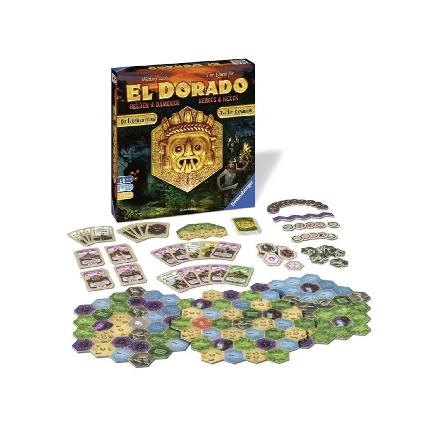 The Quest for El Dorado: Heroes & Hexes comprend trois nouvelles tuiles de terrain recto-verso qui ajoutent un nouvel élément au jeu : les malédictions. Lorsqu’un joueur s’arrête sur une case démon, il doit piocher et révéler un jeton Malédiction pour voir comment il est affecté.