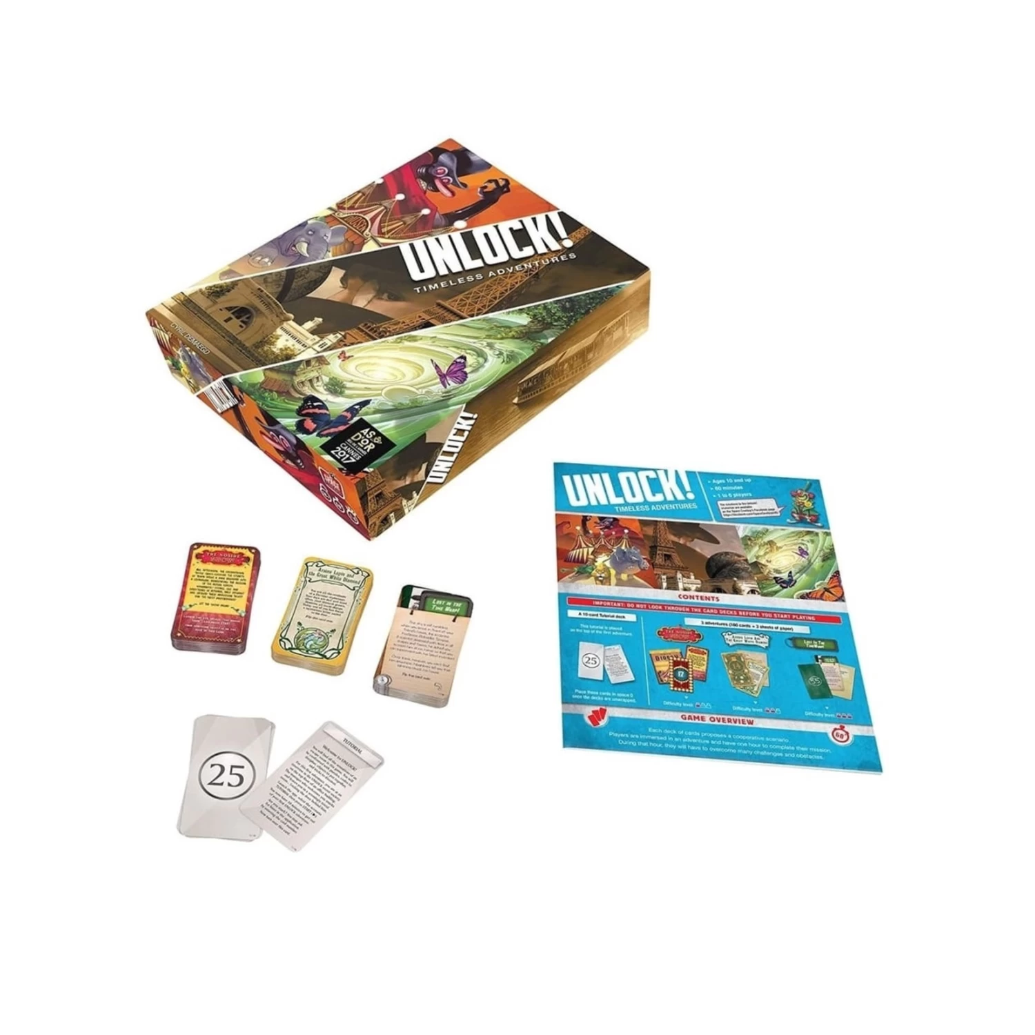 Unlock! est un jeu de cartes coopératif inspiré du phénomène des «escape rooms» où vous cherchez des objets ou des indices pour résoudre des énigmes. En jouant à Unlock! vous pouvez vivre cette expérience autour d’une table en utilisant que des cartes et une application qui vous fournira les indices, validera vos trouvailles et bien plus. Pourrez-vous trouver la clé du mystère?