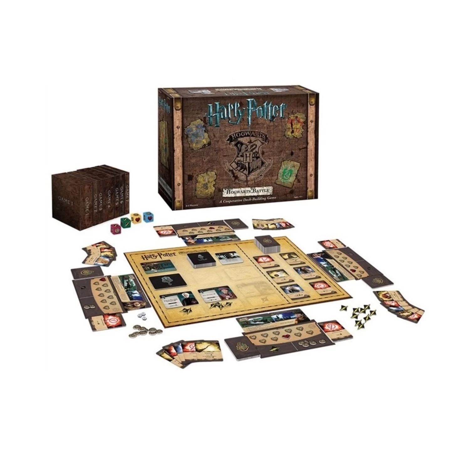 C’est à quatre élèves d’assurer la sécurité de l’école en battant les méchants et en consolidant leurs défenses. Les joueurs jouent le rôle d’un élève d’HOGWARTS : Harry, Ron, Hermione ou Neville, chacun ayant son propre jeu de cartes qui lui permet d’acquérir des ressources.