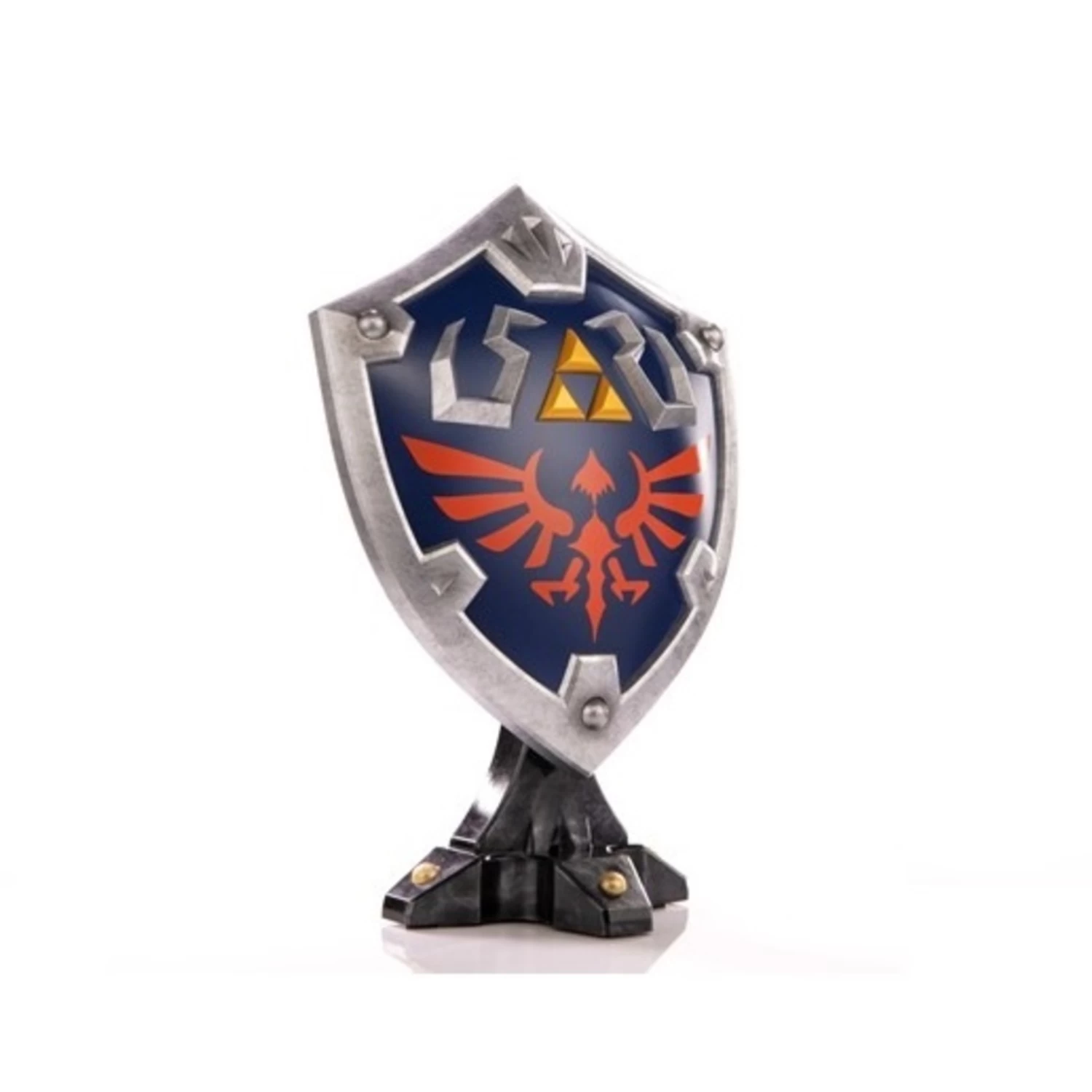 Le héros d’Hyrule, Link, a des tonnes d’armes, d’ensembles d’armures et de boucliers à sa disposition lorsqu’il explore le vaste royaume d’Hyrule, mais l’un de ses équipements les plus emblématiques de toute la série The Legend of Zelda™ est le Hylian Shield. Le devant bleu avec des bordures argentées, le symbole Triforce et l’écusson d’Hyrule sont des incontournables de son design classique, et cette statue particulière a été inspirée par le design de The Legend of ZeldaTM : Breath of the Wild.